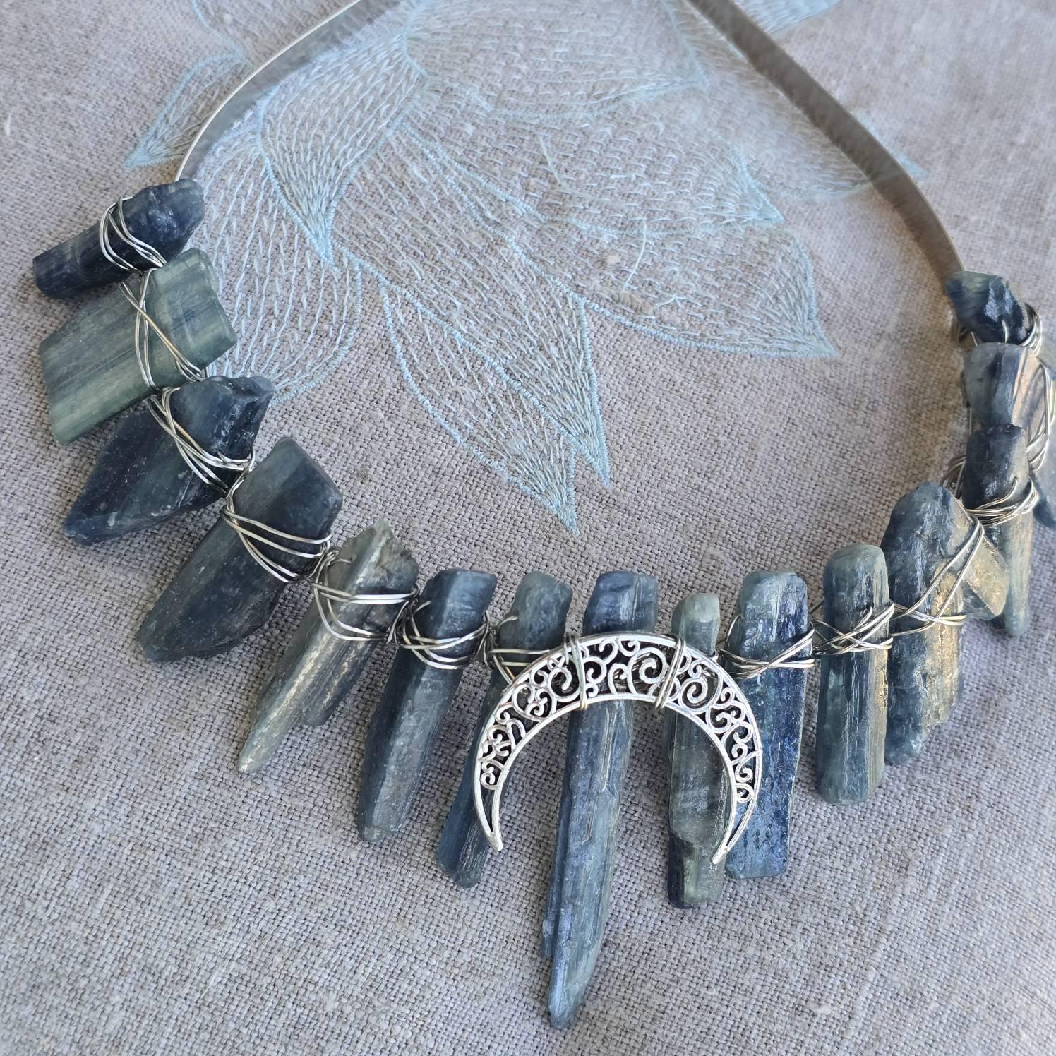 This definitely appears to be real kyanite, as you can see by my photo, closely under a sun lamp. Im happy with my purchase. (I had planned to wear this to a Renaissance fair too.) The seller was attentive and thorough. Overall, 5 stars 🌟 for excellence. Thank you!!