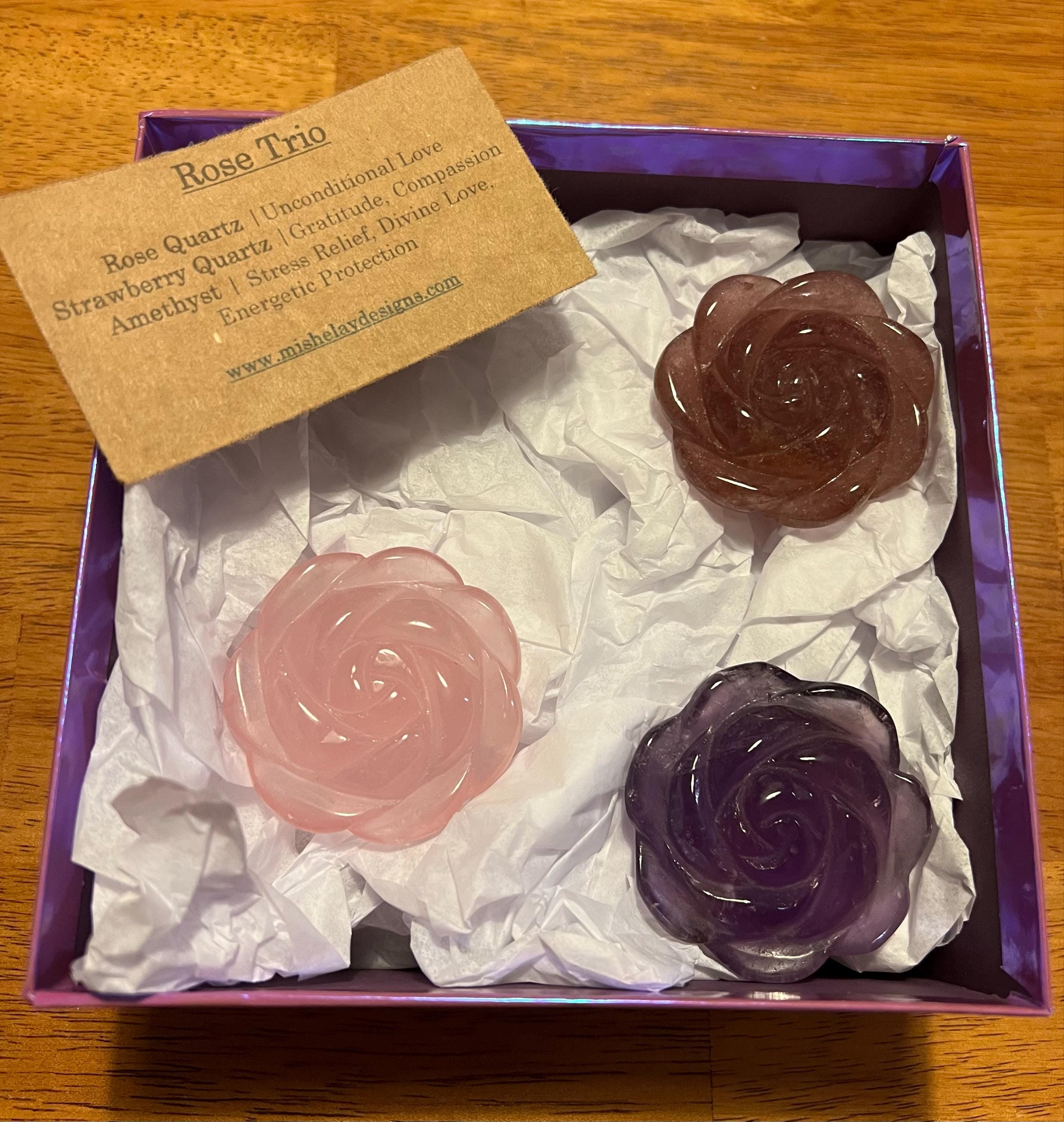 Your Rose Trio with Gift Box will arrive to you charged, blessed and infused with positive healing energy so you can benefit the most on your healing journey.
