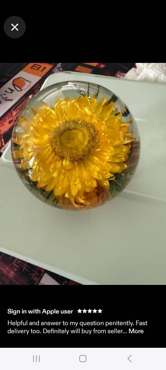 Features a real sunflower inside the resin sphere. The sunflower is called Teddy Sunflower.