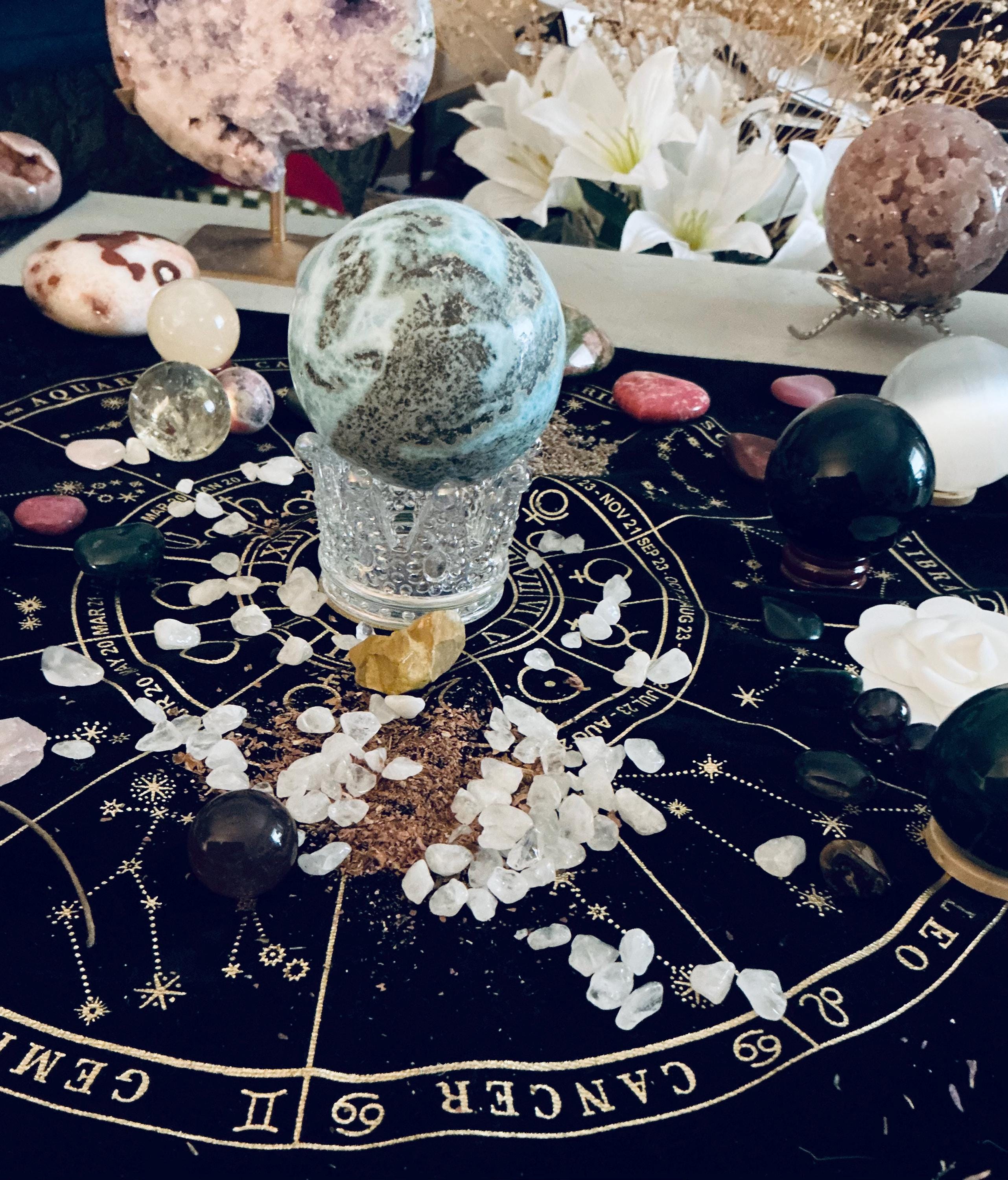 An elegant way to display your crystal balls, trinkets, candles, seasonal decor and more!